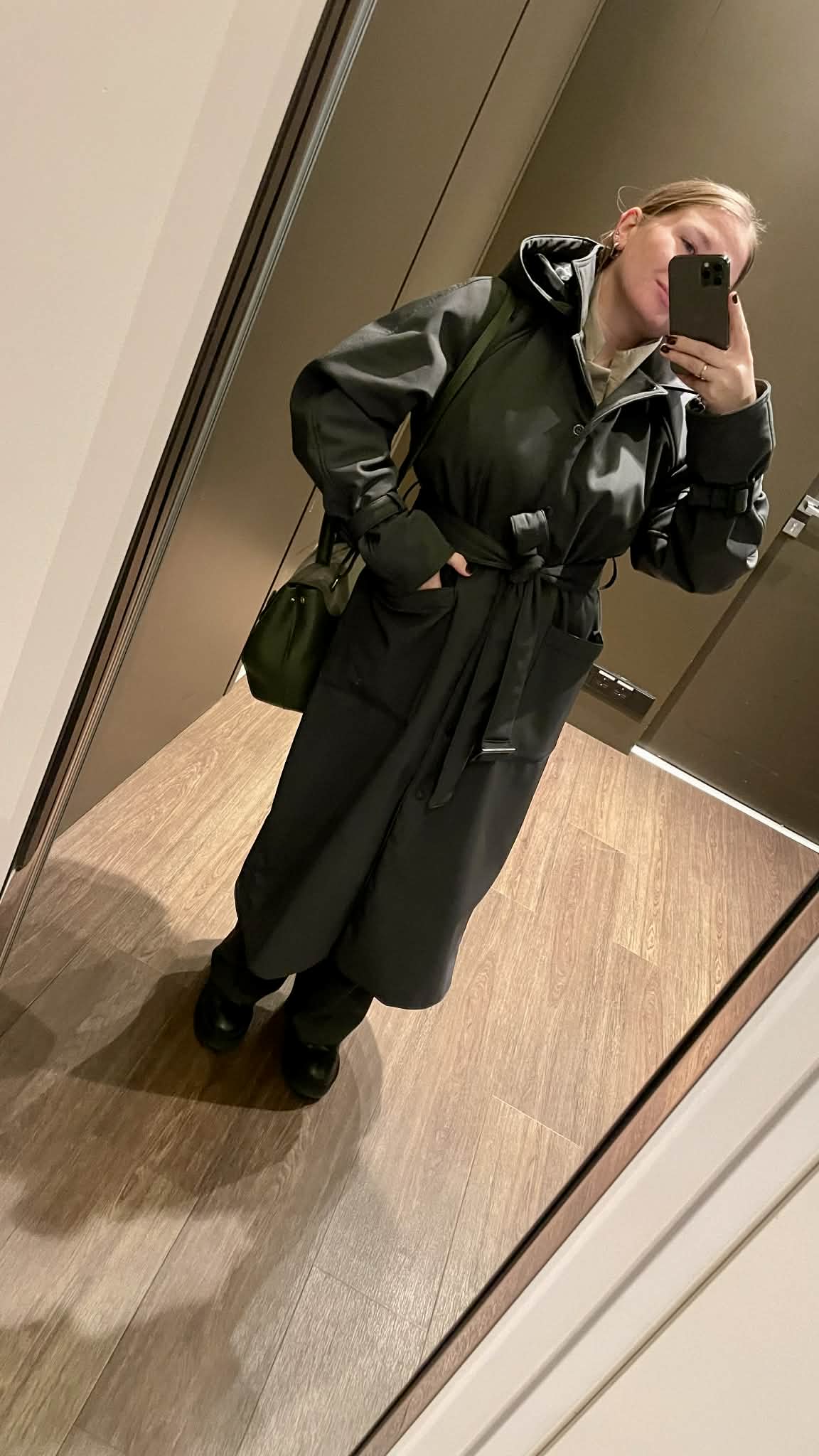 The zippered hood adds practicality for unpredictable weather, while the softshell fabric keeps the silhouette elegant and durable.