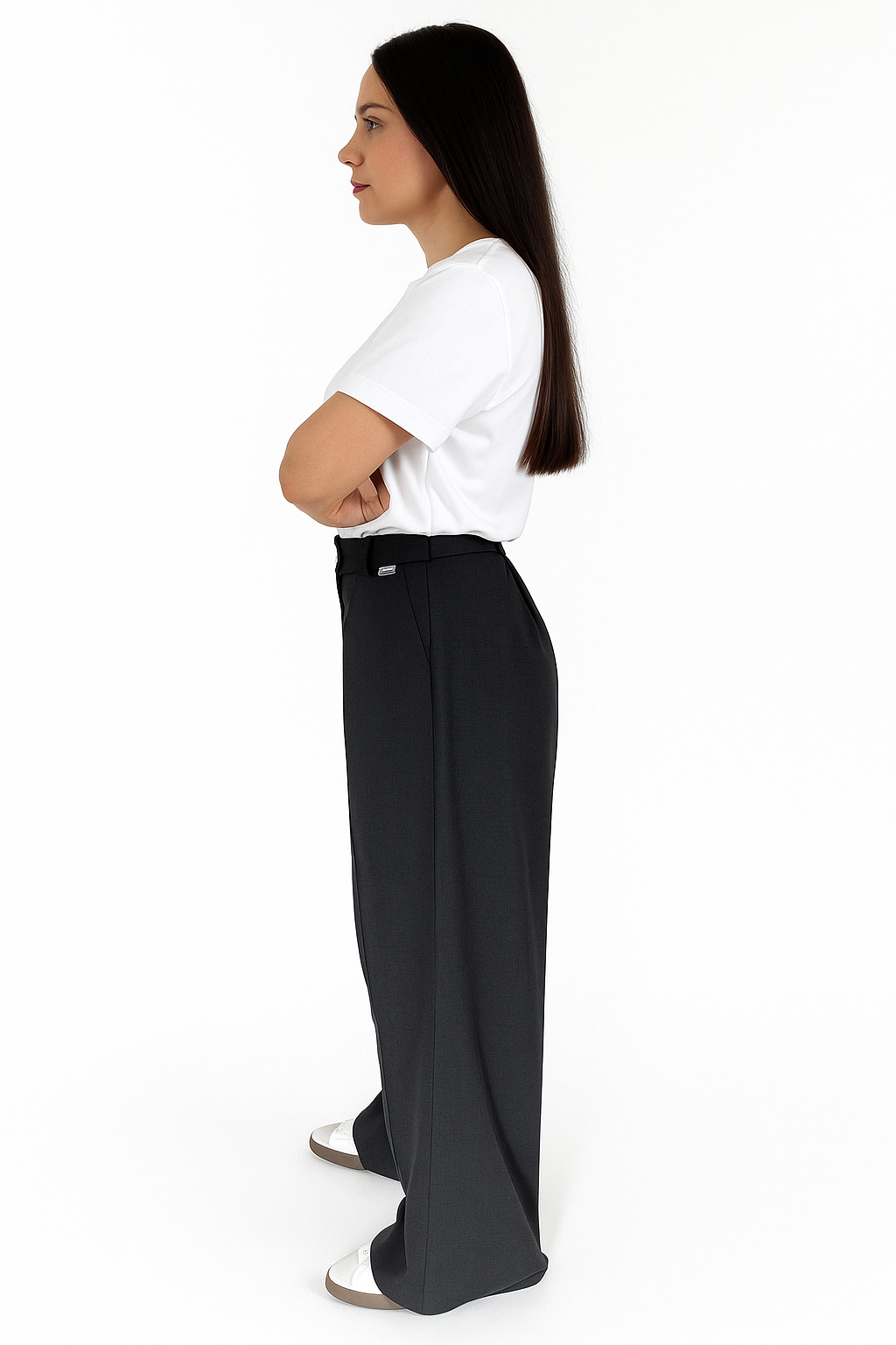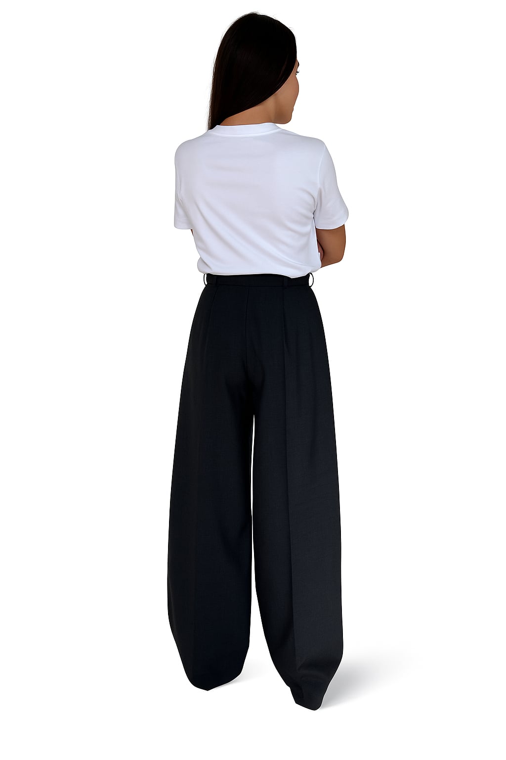 Classic palazzo trousers. Wide legs allow for more freedom of movement. Ideal for everyday wear as well as festive occasions. Made of fine wool.